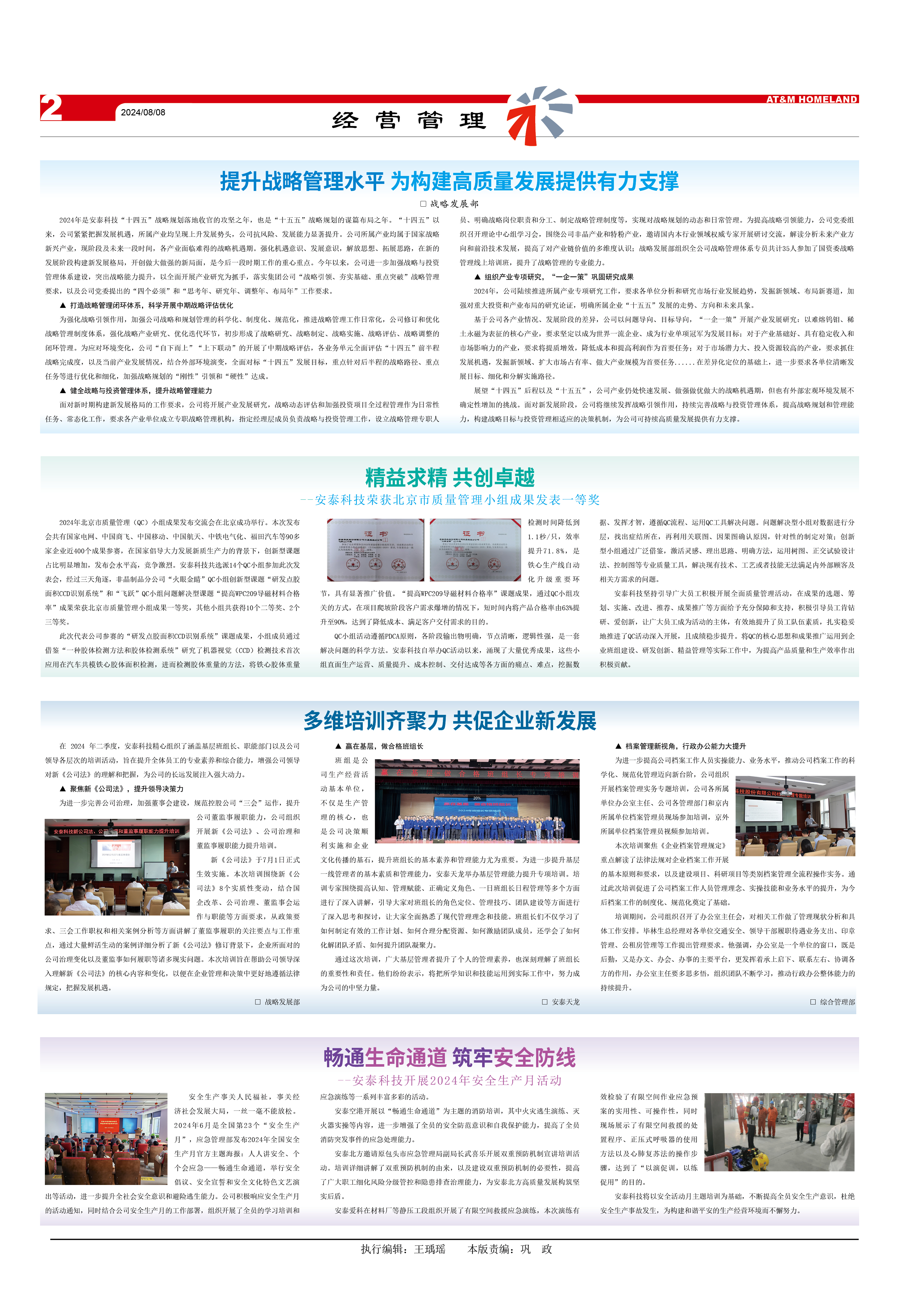 2024年是安泰科技“十四五”戰(zhàn)略規(guī)劃落地收官的攻堅之年,也是“十五五”戰(zhàn)略規(guī)劃的謀篇布局之年。“十四五”以來,公司緊緊把握發(fā)展機遇,所屬產(chǎn)業(yè)均呈現(xiàn)上升發(fā)展勢頭,公司抗風險、發(fā)展能力顯著提升。公司所屬產(chǎn)業(yè)均屬于國家戰(zhàn)略新興產(chǎn)業(yè),現(xiàn)階段及未來一段時間,各產(chǎn)業(yè)面臨難得的戰(zhàn)略機遇期。強化機遇意識、發(fā)展意識,解放思想、拓展思路,在新的發(fā)展階段構(gòu)建新發(fā)展格局,開創(chuàng)做大做強的新局面,是今后一段時期工作的重心重點。今年以來,公司進一步加強戰(zhàn)略與投資管理體系建設(shè),突出戰(zhàn)略能力提升,以全面開展產(chǎn)業(yè)研究為抓手,落實集團公司“戰(zhàn)略引領(lǐng)、夯實基礎(chǔ)、重點突破”戰(zhàn)略管理要求,以及公司黨委提出的“四個必須”和“思考年、研究年、調(diào)整年、布局年”工作要求。