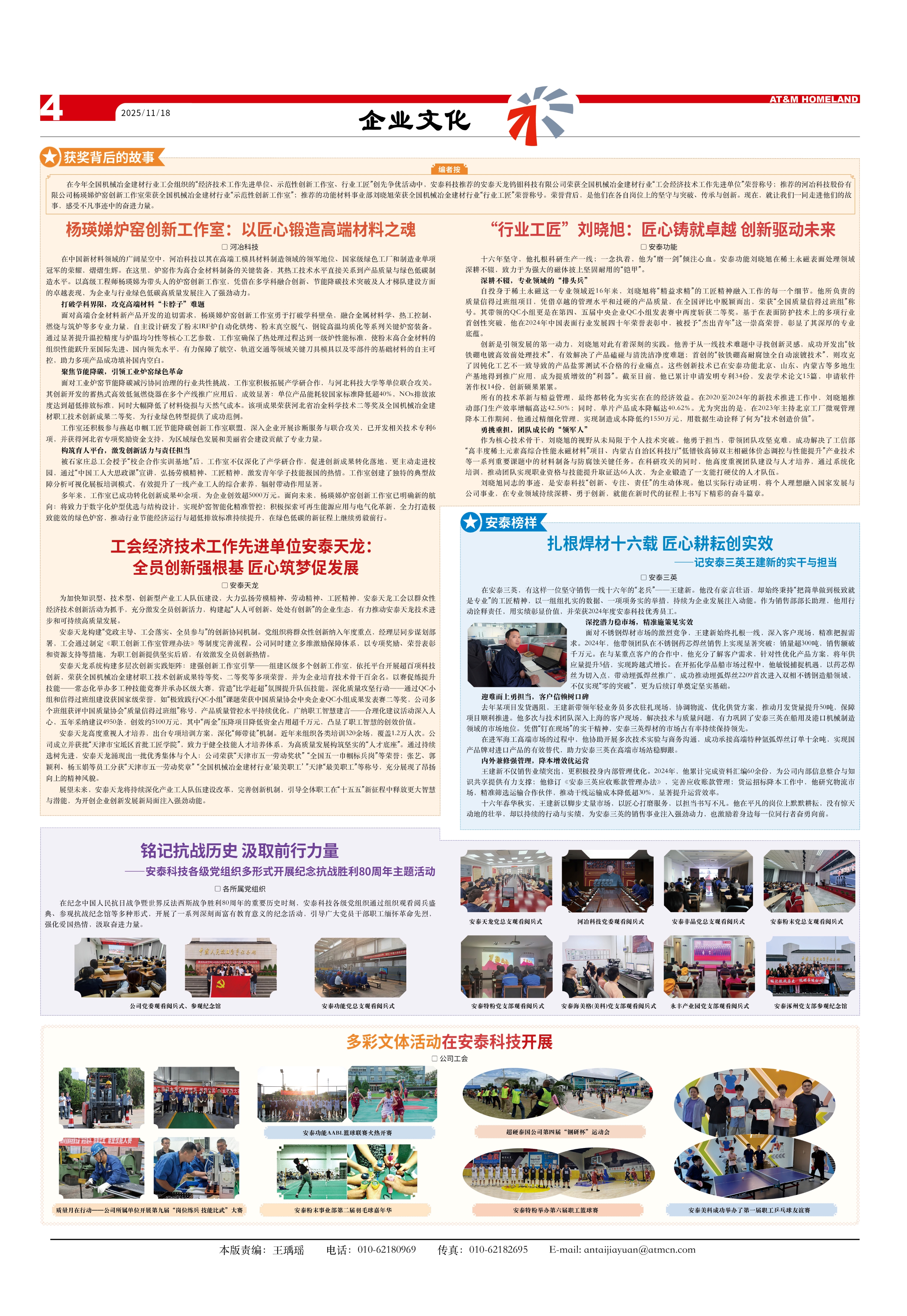 在今年全國(guó)機(jī)械冶金建材行業(yè)工會(huì)組織的“經(jīng)濟(jì)技術(shù)工作先進(jìn)單位、示范性創(chuàng)新工作室、行業(yè)工匠”創(chuàng)先爭(zhēng)優(yōu)活動(dòng)中,安泰科技推薦的安泰天龍鎢鉬科技有限公司榮獲全國(guó)機(jī)械冶金建材行業(yè)“工會(huì)經(jīng)濟(jì)技術(shù)工作先進(jìn)單位”榮譽(yù)稱號(hào);推薦的河冶科技股份有限公司楊瑛娣爐窯創(chuàng)新工作室榮獲全國(guó)機(jī)械冶金建材行業(yè)“示范性創(chuàng)新工作室”;推薦的功能材料事業(yè)部劉曉旭榮獲全國(guó)機(jī)械冶金建材行業(yè)“行業(yè)工匠”榮譽(yù)稱號(hào)。榮譽(yù)背后,是他們?cè)诟髯詬徫簧系膱?jiān)守與突破、傳承與創(chuàng)新。現(xiàn)在,就讓我們一同走進(jìn)他們的故事,感受不凡事跡中的奮進(jìn)力量。