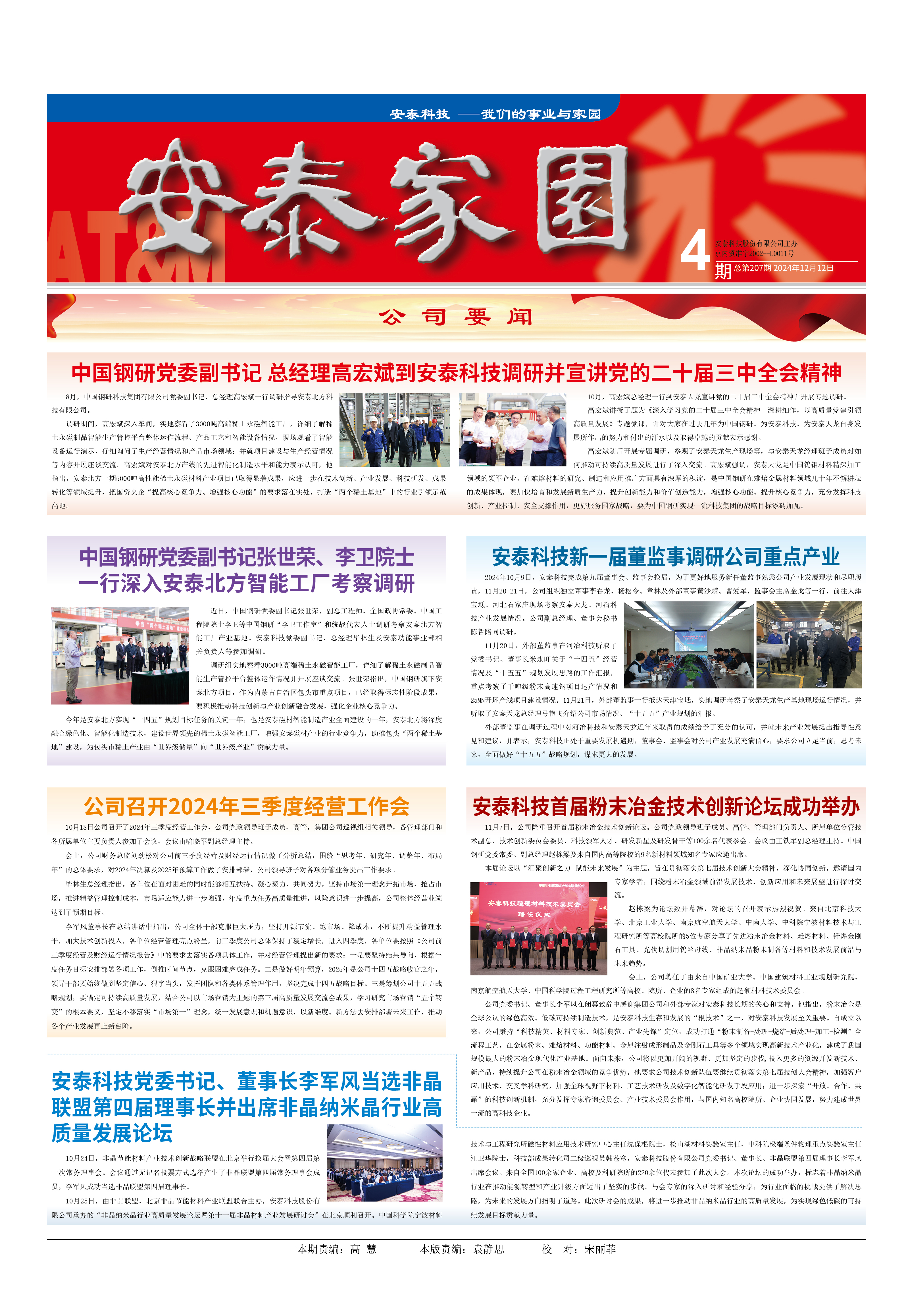 10月,高宏斌總經(jīng)理一行到安泰天龍宣講黨的二十屆三中全會精神并開展專題調(diào)研。